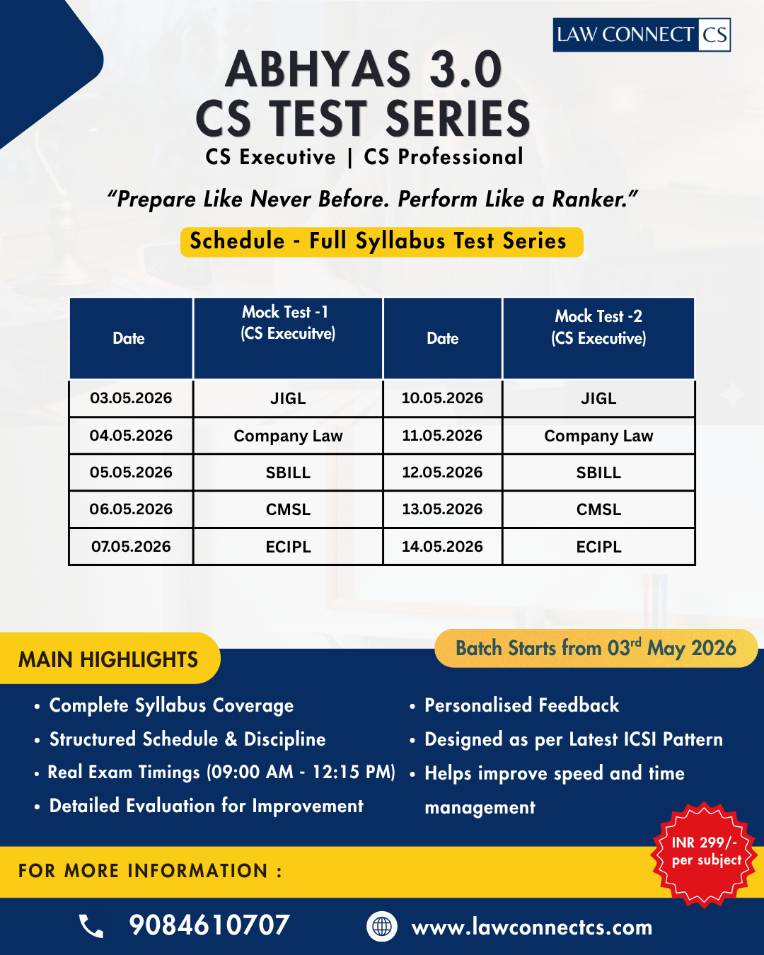 ABHYAS 3.0 Full Syllabus Test Series – CS Professional Programme & CS Executive Programme for June 2026 Attempt.