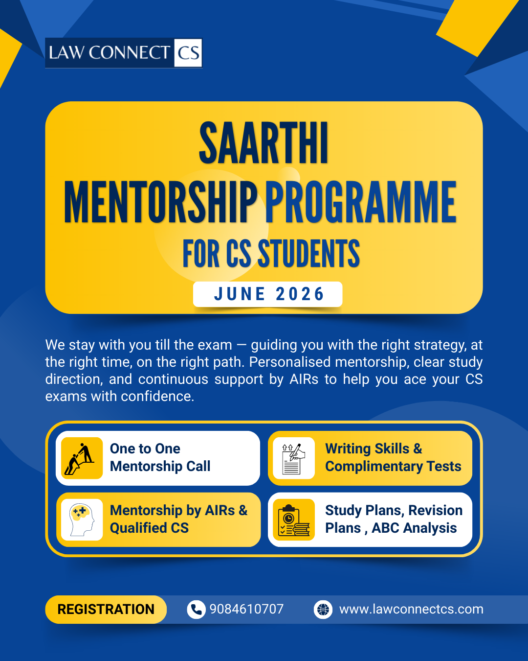 SAARTHI Mentorship Programme is designed to walk with you till the exam, helping you follow the right strategy, at the right time, on the right path.